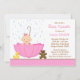 Esfregue a mãe para estar com este adorável convite para uma rapariga. Este convite para o feitiço cor-de-rosa apresenta um bebê bonito num guarda-chuva com gotas de chuva e um ursinho de pelúcia. Alguns elementos JDDigiDesign