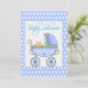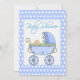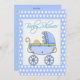 Chamadas de Bebê para meninos. O convite tem um carrinho de bebê azul e as palavras Chá de fraldas.