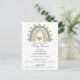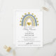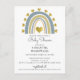 Simples e fofo arco-íris azul e corações dourados convite postal de chá bebê menino. Um estilo delicioso e caprichoso.
