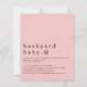 Um alternativo de 4,5 pol x 5,6 pol com preço inferior. Disponível em um STOCK DE CARTÃO SEMI GLOSS 110 lb, que é a opção padrão (recomendada para convites), OU um STOCK DE PAPEL THINNER SATIN FINISH 80 lb (ideal para gabinetes). Os envelopes são um extra opcional e são ligeiramente maiores que o tamanho da placa. Simples Garota Garota Bebê Q CHURRASCO Chá Rosa Convite, estilo contemporâneo. O cabeçalho da ocasião é grande em na moda com os detalhes na parte inferior. Personalize facilmente o texto para seus próprios detalhes.