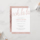 Seus convidados adorarão este convite divertido e divertido que pode ser personalizado para seu evento! Este convite artístico apresenta um design geométrico com um texto cursivo divertido e o verso apresenta uma bela folha de rosa dourada com um plano de linha de estilo de deco artístico. Este design é perfeito para qualquer lugar e vai deixar seus convidados esperando uma noite divertida para a noiva especial!