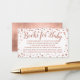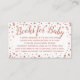 Inserção elegante, elegante, rosa dourada, impresso fixo, Book Request for Chá de fraldas Invitation card com fundo de confete rosa elegante e texto de cinza escura. Este belo e pequeno poema adicionado ao seu convite para o chá de fraldas, sugere que os convidados assinem e trazem livros em vez de cartas para os presentes do chá de fraldas para o pequeno a caminho.