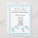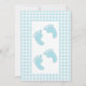 Este convite bonito é perfeito para chutar a mulher tendo dois meninos. São cheques azuis e brancos de fundo. Mostra pegadas de bebê de desenho, ambas em azul. Você pode personalizar todo o texto.