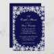 Flocos de neve de inverno sobre fundo azul escuro decoram este convite para o Chá do Casal. Se forem necessários itens adicionais nesta coleção, entre em contato conosco em prettyfancyinvites@gmail.com com sua solicitação.