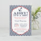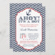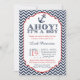 Ahoy! É um Garoto. Convite de chá de fraldas de garoto náutico com padrão de fevron grande e elementos de navegação. Corda âncora e náutica. Amarelo azul e negrito, faça uma declaração com este design!!