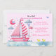 Imaginem uma cena náutica encantadora, com um veleiro cor-de-rosa gentil com uma vela rosa listrada e branca em meio a pequenos patos amarelos escorrendo sobre a água, com pássaros azuis soprando no céu acima de um oceano expansivo. Adapte esta cena com todos os detalhes para o seu chá de fraldas como quiser.