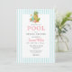Preppy Tropical Summer Poolside Chá de panela com abacaxi de aquarela e bebida com um fundo aqua e faixa branca Perfeito para alguma diversão no sol com sua melhor garota na celebração da noiva. Personalizar clicando nas caixas "Editar este modelo de design" no lado direito do item ou clique no botão azul "Personalizar" para organizar o texto, alterar as fontes e as cores