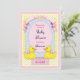 O tema doce apresenta dois patos de borracha amarelos com bolhas azuis e borda cor-de-rosa. Este design de Borracha Ducky fofo está cheio de detalhes divertidos. Personalize este convite para chás de menina com todas as informações da sua festa na frente e no verso do cartão. Uma versão do Baby Boy também está disponível na minha loja.