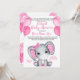 Muito fofo Elefante-Bebê-Rosa em Máscara Convite Virtual para Chá de fraldas para uma Menina. Personalize todo o texto.