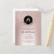 aniversário de 21 anos Blush Convite de festas de torrada de champanhe de sopro brilhante... Num fundo de folha metálica cor-de-rosa-pincelada, o nosso elegante convite de festas postcard apresenta uma camada fina e feminina com um design de "logótipo de aniversário" personalizado de rosa dourado a tostar óculos de champanhe dentro de um círculo negro. Todo o texto na frente e no verso do nosso cartão postal de festa de aniversário de vidro pode ser facilmente personalizado com suas próprias informações usando o modelo prático.