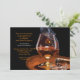 Convite de um homem para celebrar o aniversário, aprovação no exame da Ordem dos Advogados, despedida de solteiro e mais. O cartão apresenta fumaça saindo de um charuto aceso ao lado de um copo de conhaque ou brandy.