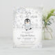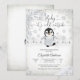 Celebre com um estilo de inverno aconchegante com este adorável convite de chá de bebê de pinguim. Com flocos de neve gelados, folhagens geladas e uma ilustração de um adorável bebê pinguim, este design define o tom sazonal perfeito para sua reunião especial. As cores pastéis suaves de inverno criam uma atmosfera festiva e calorosa, tornando-a ideal para futuros pais que amam temas caprichosos e sazonais. Personalize com seus detalhes para torná-lo exclusivamente seu e encante os convidados com um lindo souvenir.