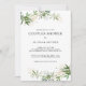 Este elegante convite para chás de casal verde-oliva é perfeito para o seu chá de boho de verão moderno. Ele é projetado com uma aquarela esmeralda verde e cor de sage, toques de ouro botânico e uma simples tipografia de vintagem negra. Todos esses elementos se combinam para um belo sentimento boêmico.