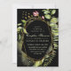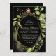 Um convite para Chás elegante com cor d'água, folhagem verde selvagem com flores cor-de-rosa em fundo preto. Para personalização mais avançada deste design, clique no botão "Personalizar" acima! Itens correspondentes também estão disponíveis.
