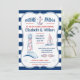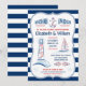 Âncoras APesam! Convite temático náutico com âncora, farol, veleiro, beijo de peixe e peixe-estrela. Limite do quadro de linhas. A parte de trás da placa tem um fundo listrado. A opção de papel no estilo do suporte também parece excelente com este convite. Personalize com seu próprio texto. Por favor, procure na minha loja mais assim. Excelente para festas de Ocean, Sea, Lake ou praia. Ilustração Original por pj_design.
