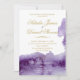 Este design moderno apresenta a cor de Pantone do ano de abertura de aquarela "Ultra Violet" com um elegante guião dourado. Fácil de personalizar com os detalhes do seu chá de casamento. Coordena-se com a nossa coleção de Casamento Ultra Violet Watercolor.