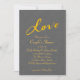 O amor, escrito em um falso pincel de ouro, acentua este Convite para Chás em um fundo ilustrado de cinza. Este convite é apresentado no documento de base; no entanto, recomendo o peso e a textura do papel de linho para melhorar a ilustração de fundo do Convite para Chás de Casal. Este convite faz parte da Coleção de Casamentos de Amor em Linen Cinza. Se forem necessários itens de coordenação adicionais para o seu evento, entre em contato conosco em prettyfancyinvites@gmail.com com sua solicitação.