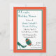 Convite para chás de casamento divertidos feito em Teal, laranja e branco. Gráficos de um quadro cor de laranja e cor de lacre, em torno de uma área de texto branca, com um calcanhar teal a calcanhar, chutando um futebol branco, laranja e em cor de laranja. O texto preto e branco é totalmente personalizável para personalizar o seu chá de casamento. Excelente para o casal do fã de futebol.