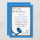 Casais divertidos convite para chás de casamento feito em um tom azul bonito, preto, prateado e branco. Gráficos de uma moldura azul, preta, branca e prata, em torno de uma área de texto branca, com um na moda azul e um calcanhar preto para chutar um futebol azul e preto. O texto azul e preto é totalmente personalizável para personalizar para o seu chá de casamento. Excelente para o casal do fã de futebol.