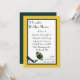 Convite para chás de casamento divertidos feito em amarelo, verde-caçador e branco. Gráficos de uma estrutura amarela e verde, em torno de uma área de texto branca, com um palito na moda verde para saltar em um chute de futebol verde e amarelo. O texto verde e preto é totalmente personalizável para personalizar para seu chá de casamento. Excelente para o casal do fã de futebol.