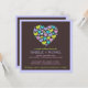 Um coração de corações em tons de roxo, turquesa e limão faz um design excelente para um chá de casamento de casal. Também disponível em esquemas de cores adicionais e com cartazes e adesivos correspondentes: OBSERVE: SÃO NECESSÁRIAS POSTAGENS ADICIONAIS PARA OS CONVITES DE CORREIO QUADRADO; VERIFIQUE COM O ESCRITÓRIO DE POSTO PARA GARANTIR QUE VOCÊ ESTÁ COMPRANDO A DENOMINAÇÃO CORRETA
