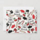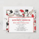 Um convite para chás de cozinha, com um cozinhar temático, constituído por misturadores manuais, luvas de forno, colher de madeira, pinos rolantes, espátulas, uísques, cerejas e fogão retrô. Design tem um esquema de cor vermelha e preta. Personalize o texto na frente e atrás.