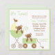 Este adorável convite para Chás de fraldas gêmeos é a forma perfeita de convidar convidados para qualquer Chá de fraldas. Apresenta ursos adoráveis em um carrinho verde, personalize com os detalhes da sua festa. © Cocoa Studio