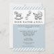 O chá de fraldas clássico e criativo convida a apresentar charmes prateados e linhas engraçadas.