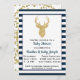 Um adorável convite para chás de fraldas de veados marinho e ouro