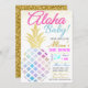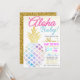 Incrível e divertido, este convite para bebê do abacaxi de abacaxi aloha de aquarela é excelente para chás de fraldas, borrifadas de bebês e muito mais! Convide recursos gráficos de abacaxi de aquarela e configurações de ouro falso em um fundo branco!