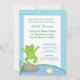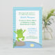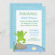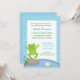 Sapo Verde bonito pulando em uma rocha. Diversão do convite de Chá de fraldas para rapazes. Mamãe vai adorar este design sapo bonito.