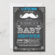 Bacia do bigode! Celebre o seu chá de fraldas de homem com o nosso Convite de festas de Bacia do Homem Pequeno bigode. Este pequeno convite de festas de homem apresenta um bigode branco no quadro negro. Perfeito para o seu barbeiro comprar o tema chá de fraldas, festa do tema do bigode.
