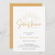 Um raio de sol está a caminho, Chá de fraldas convite. Modelo do estilo design de tipografia quic com suporte para padrão amarelo rústico.