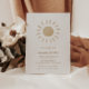 Este design rustical de sol inspirado na boêmia apresenta uma cor d'água e tons neutros lindos. O lado traseiro deste convite apresenta um fundo texturizado de cor d'água bege. Um design elegante, chique e adorável.