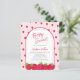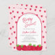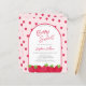 Você está planejando um chá de fraldas de verão? O charmoso convite para o orçamento de chá de fraldas com o tema morango desta menina é decorado com morangos vermelhos e design de na moda-arca. Diz Berry Sweet na tipografia elegante da escrita. A parte traseira apresenta um padrão de morango em um fundo rosa macio. Facilmente personalizável. Original Watercolor © Michele Davies.