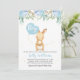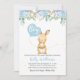 Procurando um doce chá de fraldas de coelhinho floral para um bebê? Este design apresenta um balão de coelho e de aquarela e um arranjo floral de aquarela azul no topo. O fundo é branco com uma textura escura dourada nas laterais do convite. O convite de chá de fraldas coelho deste rapaz está pronto para ser personalizado. Design semelhante também está disponível para uma garota na loja.