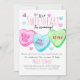 Estes são convites para chás de fraldas cardíacos doces com tema de Dia de os namorados fofo. Este convite para o tema do Dia de os namorados tem 3 grandes corações doces no meio que diz "Nossa querida está vindo". Enquanto estava cercado por mini doces corações. Perfeito para qualquer chá de fraldas de tema do Dia de os namorados.