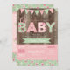 Convite para chá de fraldas de chique para uma garota. Para um chique de vintage, este convite tem uma mistura deliciosa de florais e bolinhas criando um bonito e bonito olhar para o seu evento. Com uma mistura de pinks, azuis e verdes, acentuado com o revestimento floral e bolinhas, este convite é perfeito para a futura mãe do chique.