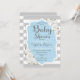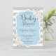 Convite para Chá de fraldas Elegante para bebê azul, cinza e design branco. Na moda com rosas brancas.