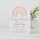 Celebre sua mãe favorita com estes convites cor-de-rosa, amarelo e cinza. Seu chá de fraldas vai se emocionar com o adorável tema simples do arco-íris.