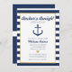 Convidados para Chá de fraldas náutico - ancorar design com uma borda de fundo listrada. Perfeito para um gênero também revela!