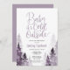 Barato personalizado estampado de inverno para chuveiros de bebês em uma bonito paleta de cores de roxo e cinzas. Este doce design apresenta uma floresta de cor d'água em árvores verdes e um roteiro moderno do estilo de letreiros manuais que diz Baby It's Cold Outside - perfeito para um tema de chá de fraldas de inverno rústico. Personalize-o com os seus detalhes de eventos para a menina. Use as ferramentas de design para escolher qualquer cor de fundo, editar as fontes de texto e as cores ou carregar suas próprias fotos para criar um convite de chá de fraldas de inverno.