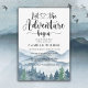 Que a aventura comece o convite para chás de fraldas de aquarelas com florestas e montanhas paisagem selvagem com tipografia de escrita de caligrafia com coração no meio. Consulte o conjunto de cheios deste design, com materiais e suprimentos de festas correspondentes em: https://www.zazzle.com/collections/forest_adventure_baby_shower-119311648144421112