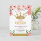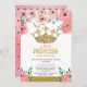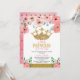 Convite perfeito para uma mãe esperando uma garota incluindo a tiara dourada e flores rosa. Personalize este convite de chá de fraldas para torná-lo especial para você.