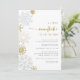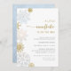 Celebre a chegada do seu pequeno floco de neve com este elegante convite para chás de fraldas no inverno maravilhoso. Apresentando flocos de ouro e neve prateada em shimmering, sotaques azuis macios e tipografia na moda, essa design capta a magia da estação. Perfeito para um chá de fraldas honrando uma chegada de inverno — personalize com os detalhes de sua festa para uma reunião quente e memorável.