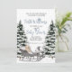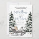 Esta aquarela esbranquiçada ilustrada por chá de fraldas apresenta uma cena de inverno nevado com uma carruagem mágica, um ursinho de pelúcia e skates de gelo, estabelecendo a cena para o seu mágico Chá de fraldas da Terra Maravilha de inverno.
