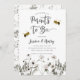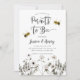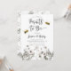 Cartão de convite para chás de fraldas cômicos com ilustração aquosa de uma abelha e flores silvestres. O texto diz "Vamos o chá dos Pais à Abelha".