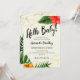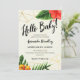 Convite ao chá de fraldas com folhas tropicais verdes, floral e geometria dourada do Havaí vermelho e amarelo