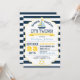 Fundo impressão de marinho de faixa branca e com cartão de chá de fraldas de gêmeos náuticos flutuantes e salva-vidas.