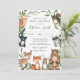 Convide o seu convidado com os nossos amigos elegantes e modernos da floresta. O convite para o chá de fraldas inclui a granja verde eucalipto e os animais da floresta com aquarela. Personalize com seus detalhes de chá de fraldas em layout simples e fonte elegante de estilo manuscrito.
